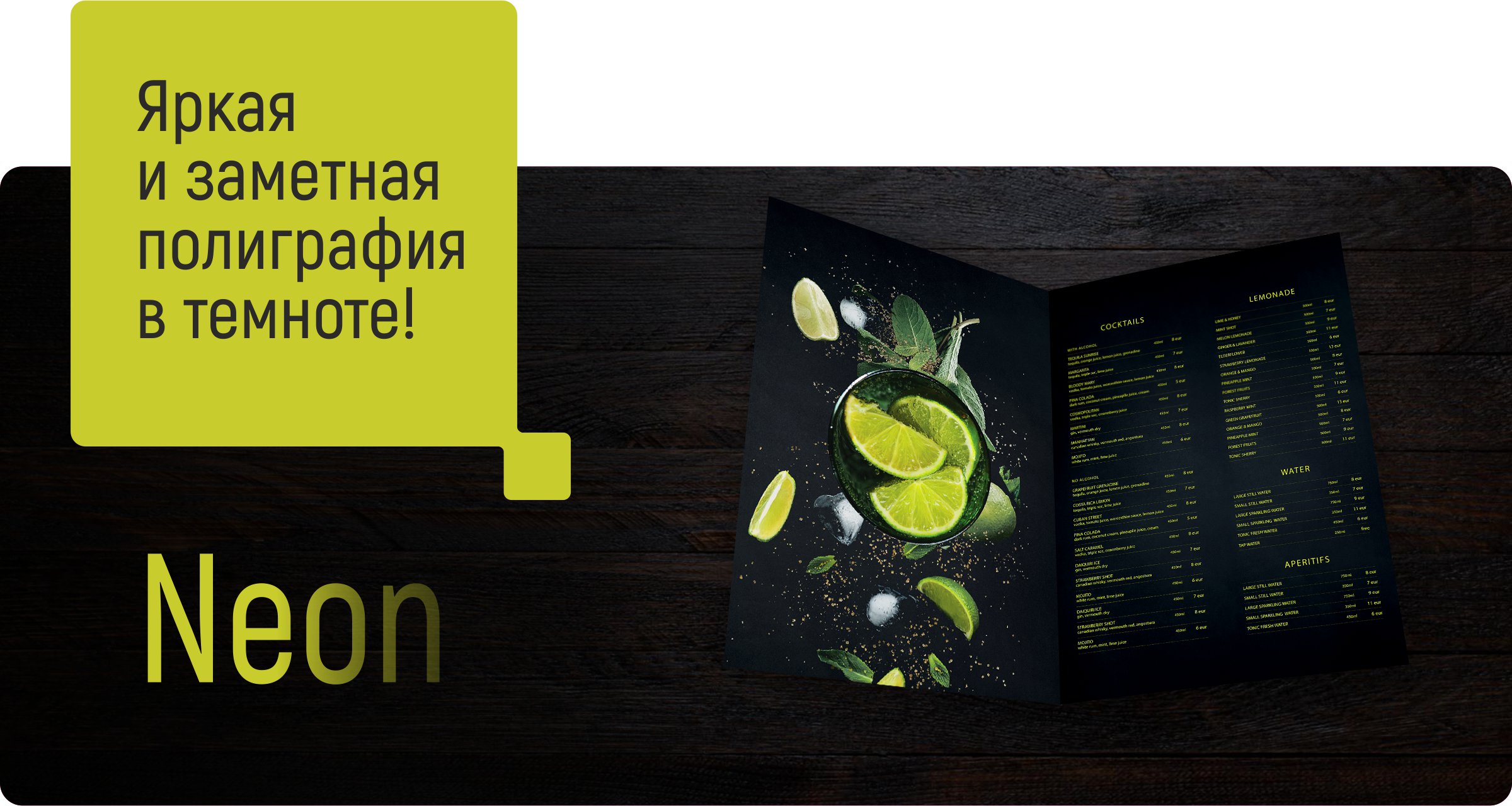Приглушенный свет, неоновая подсветка и необычные варианты освещения часто используются для создания атмосферы в ресторанах, барах, ночных клубах и на развлекательных мероприятиях. При этом возникает вопрос – как донести до посетителя информацию, если обычная полиграфия в темноте меркнет и становится практически нечитаемой?